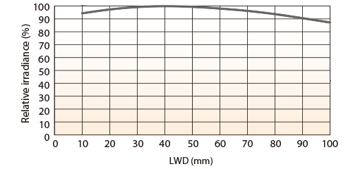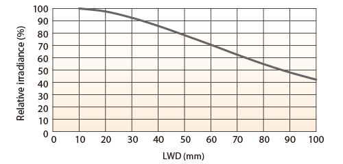 At LWD of 10 mm, the whole surface of the workpiece is illuminated uniformly.This allows the outer edge of the container and the printed text to be imaged. |