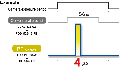 The PF Series is a line of extremely bright LED lighting and power supplies designed exclusively for strobe illumination. It is ideal for high-speed image processing inspections because of its high-power strobing in steps of 0.1 μs. Since its release in May 2016, it has become a widely used lighting solution for inspecting electronic components, semiconductors, pharmaceuticals, packages, and more.