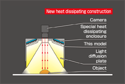 - The light from LEDs is transmitted through a light-guiding diffusion plate to illuminate the entire workpiece with uniform diffused light from a wide light-emitting surface. New heat dissipating construction.